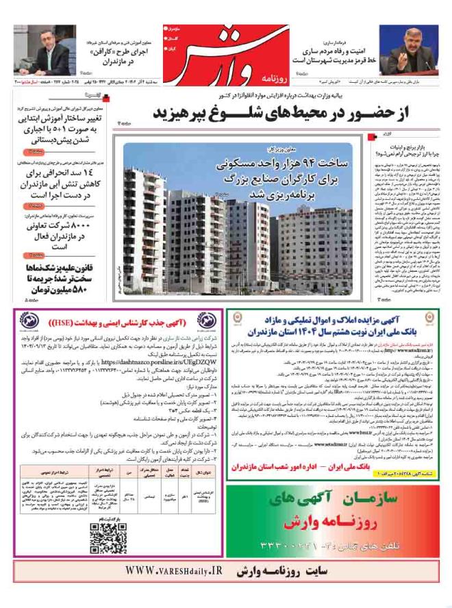 ۱۴۰۴ سه شنبه ۵ آذر - شماره 2166