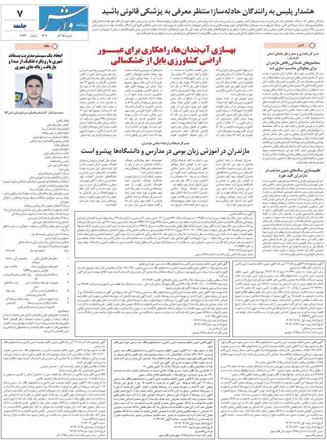 ۱۴۰۴ شنبه ۱۶ آذر - شماره 2173