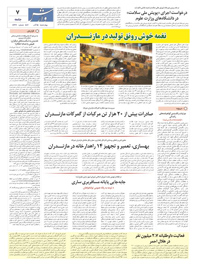 ۱۴۰۲ چهارشنبه ۱۵ آذر - شماره 1637
