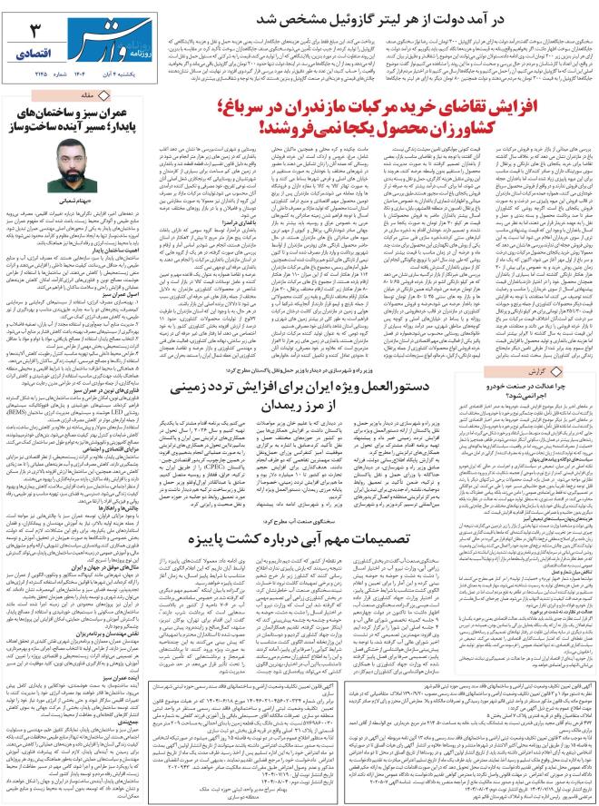 ۱۴۰۴ يکشنبه ۵ آبان - شماره 2145