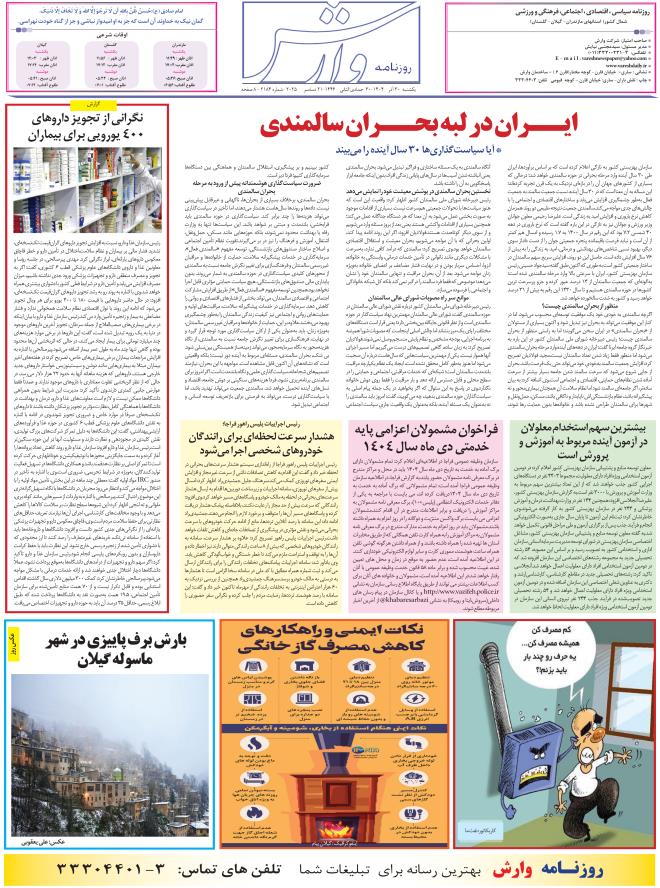 ۱۴۰۴ دوشنبه ۲ دي - شماره 2184