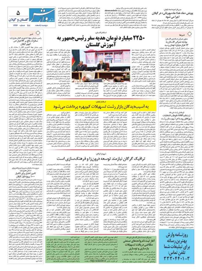 ۱۴۰۴ دوشنبه ۵ اسفند - شماره 2226