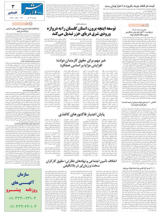 ۱۴۰۴ دوشنبه ۱۸ آذر - شماره 2175