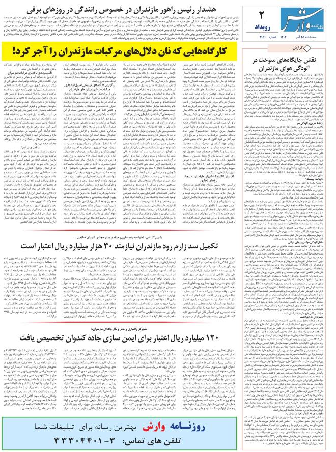 ۱۴۰۴ سه شنبه ۲۶ آذر - شماره 2181