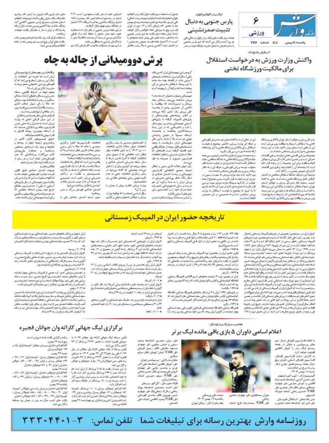 ۱۴۰۴ يکشنبه ۲۰ بهمن - شماره 2216